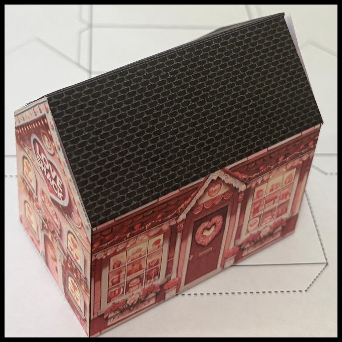 Create your own romantic little village with this printable Valentine paper house template. Designed in a charming English cottage style, this craft folds into a 3D decorative house perfect for Valentine décor, gifts, or table styling.