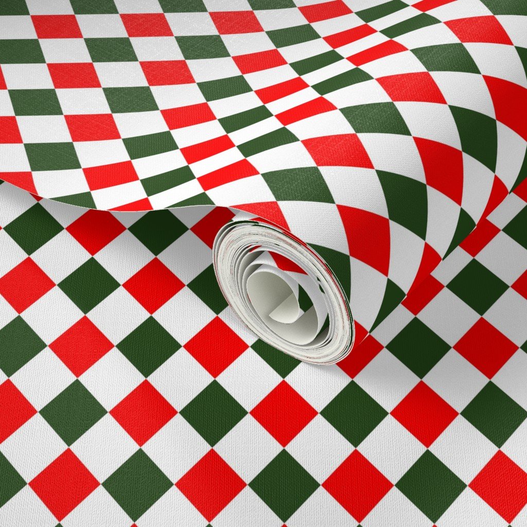Bold Christmas harlequin checkered pattern with red, green, and white diamonds, ideal for crafts and home decor.