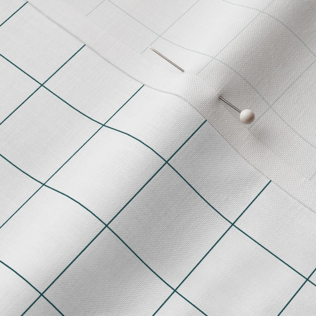 Fabric in 1 Inch Grid Line Pattern with Dark Teal Lines on White Fabric