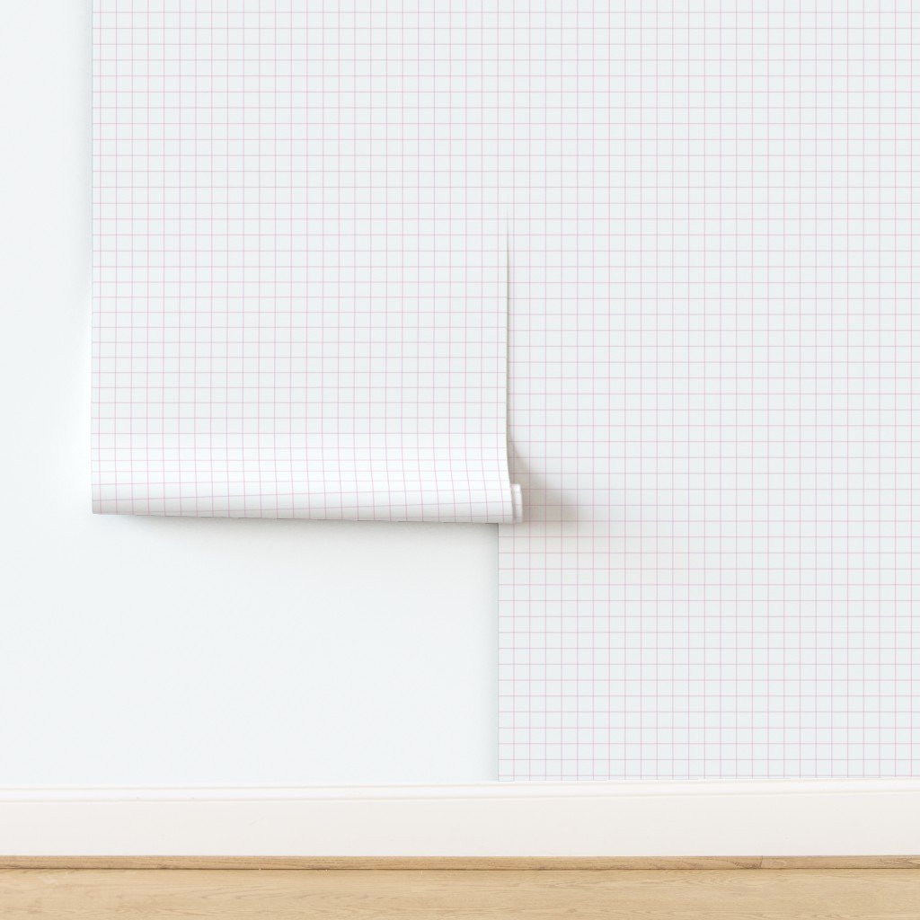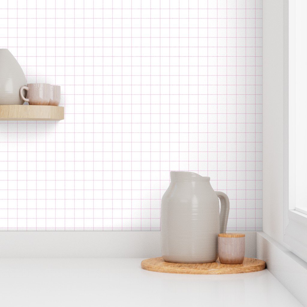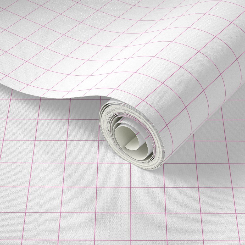 1 Inch Grid Line Pattern with Hot Pink Lines on White Wallpaper