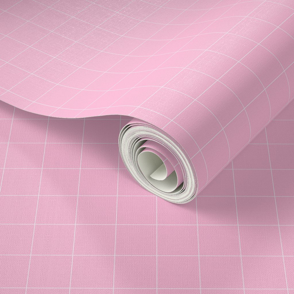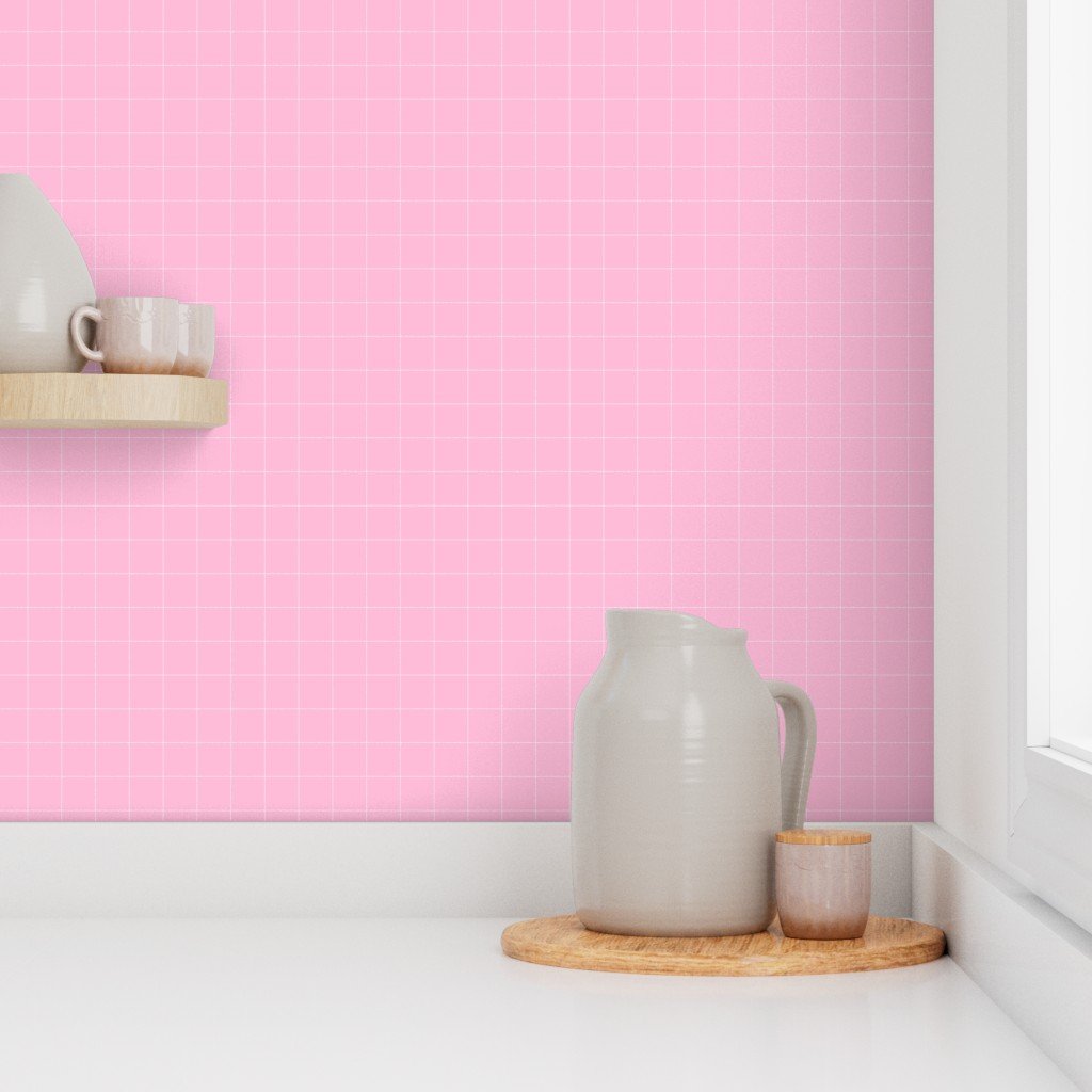 1 Inch Grid Line Pattern with White Lines on Cotton Candy Pink Wallpaper