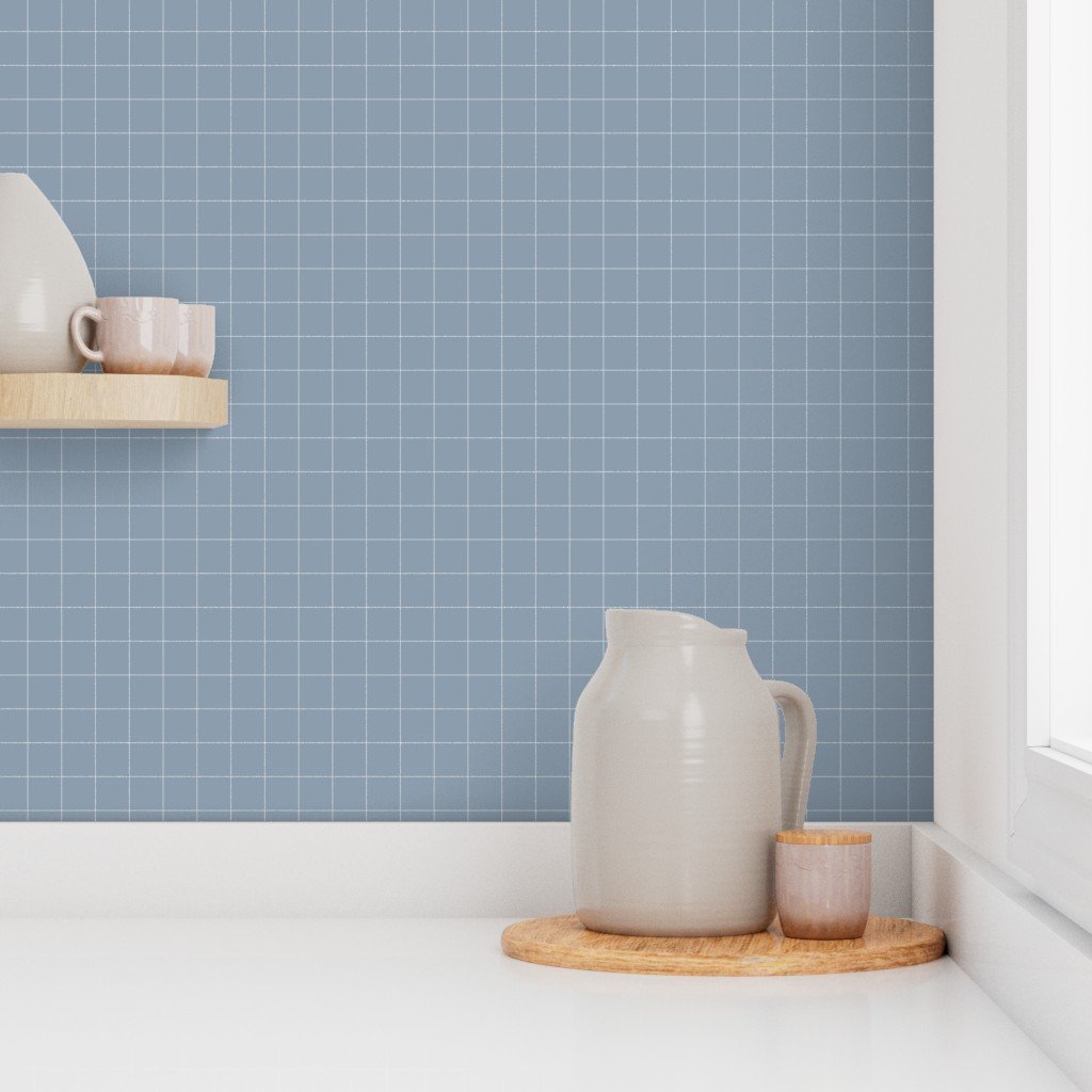 A 1 inch grid line pattern with white lines on a dusty blue background.