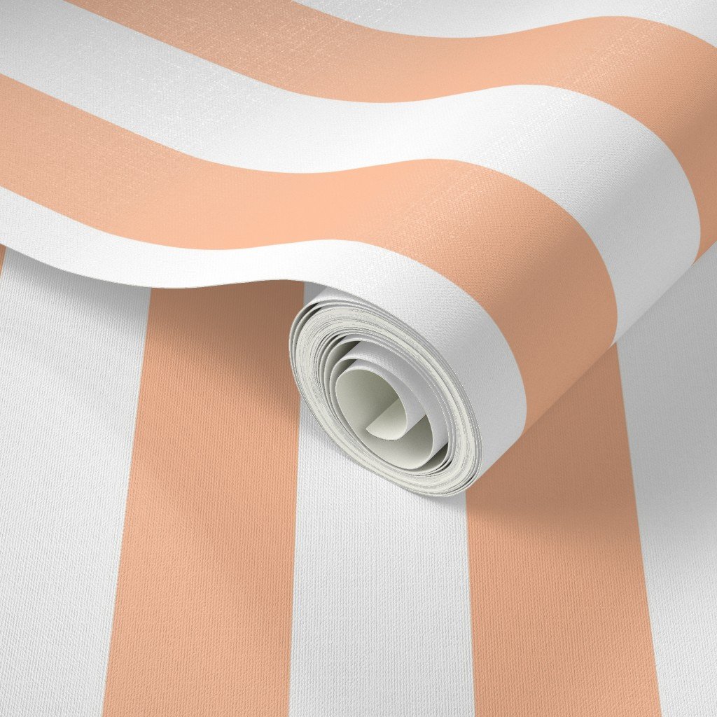 2 Inch Cabana Stripe in Peach Fuzz Color of the Year 2024 and White Wallpaper