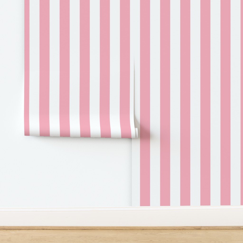 3 Inch Bubble Gum and White Vertical Big Top Circus Stripe Wallpaper