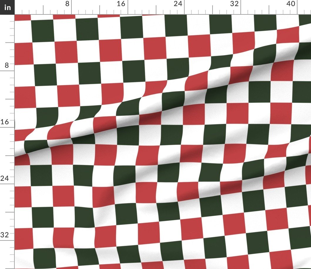 A vintage-inspired Christmas checkered fabric with cranberry red, dark green, and white squares, perfect for seasonal crafts and home decorSpecificationsFabric content: 100% CottonPrinted width: 42 inchesWeight: 4.4 oz/yd²Opacity: OpaqueConstruction: Plain WeaveShrinkage: 5-6% length x 2-3% widthThread count: 120Performance RatingsWyzenbeek (cotton duck abradant): 30,000 double rubs (ASTM D1457-13)Martindale: 20,000 cycles (ASTM 4966-22)Crocking dry (1 severe – 5 no color transfer): Exceeds 3 (AATCC TM 8)Crocking wet (1 severe – 5 no color transfer): Exceeds 3.5 (AATCC TM 8)Pilling (1 severe – 5 none): 4.5Note or Country of OriginCountry: Woven in IndonesiaPrinting: Digitally printed in the USA with water-based inksFabric backing: The backside of the fabric will be unprinted