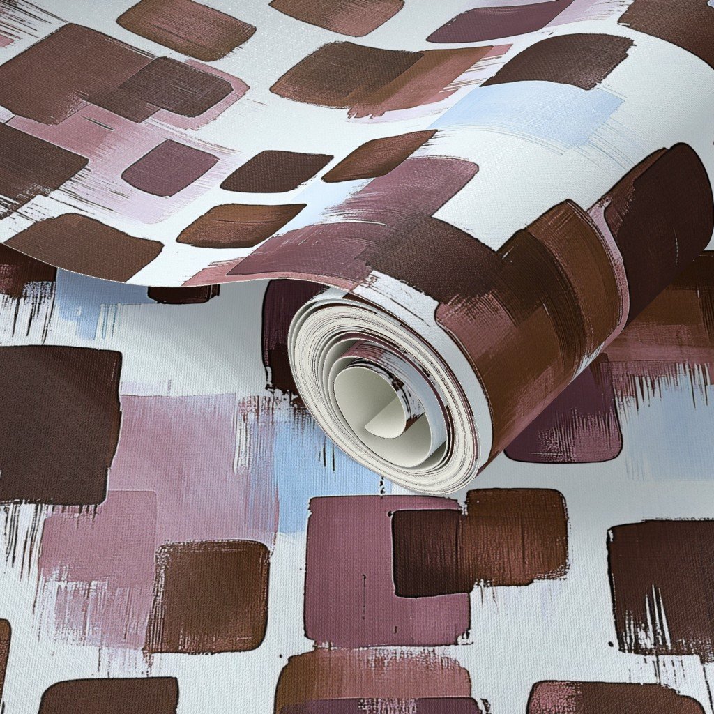 Be the first to review “Abstract Brushstroke Blocks in Brown Rosewood and Sky Blue Wallpaper”