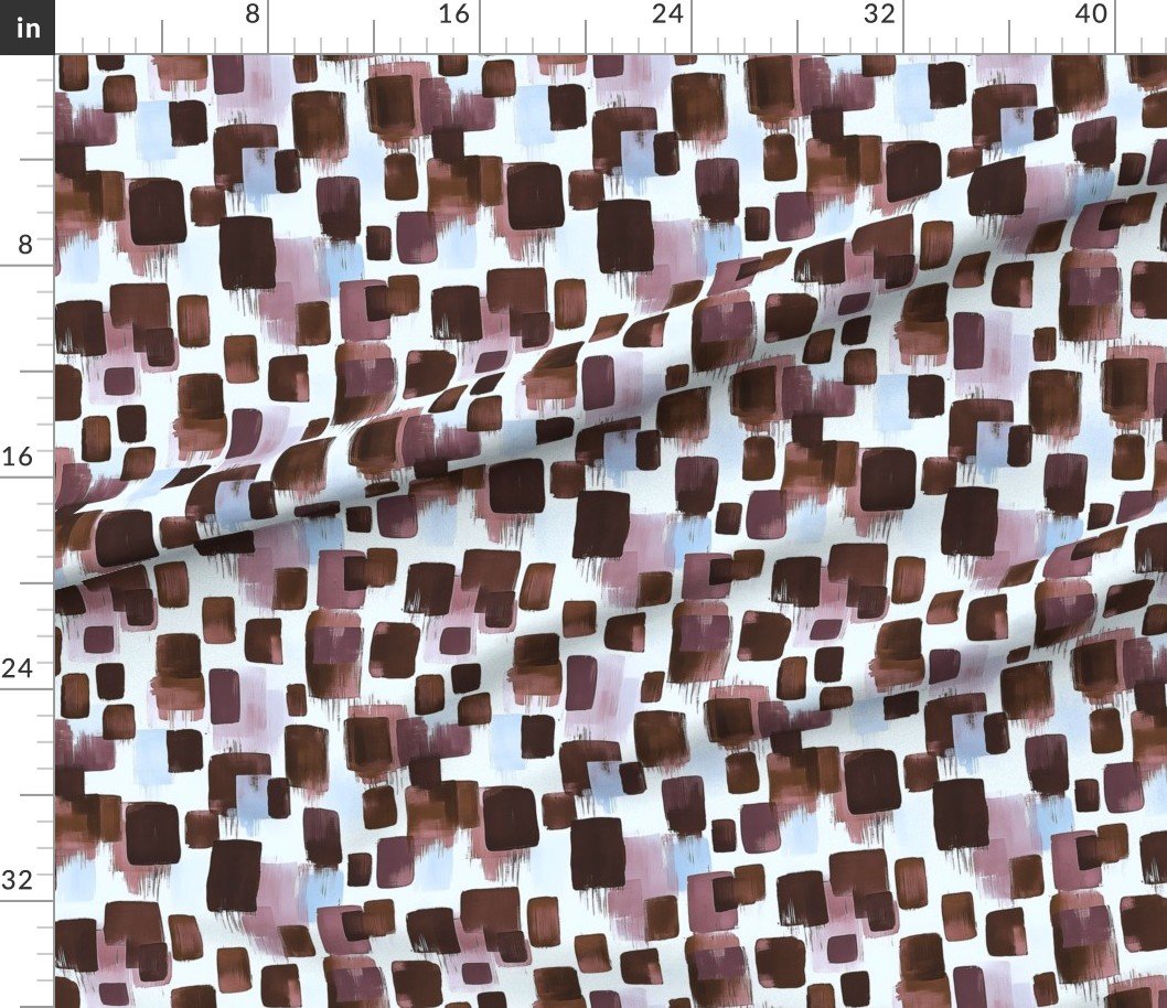 Brushstroke blocks in rich brown, rosewood, and sky blue create a striking abstract design, perfect for modern decor, fashion, or craft projects.