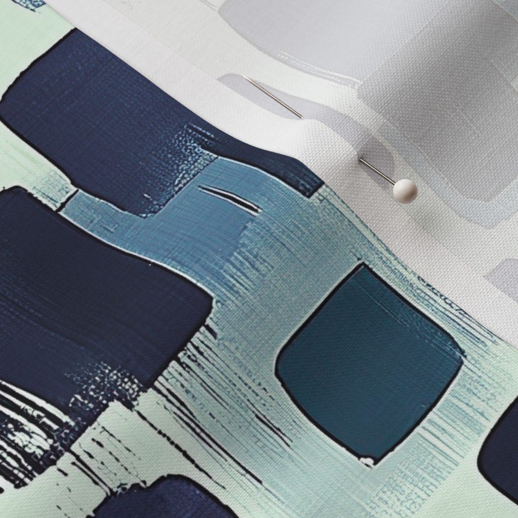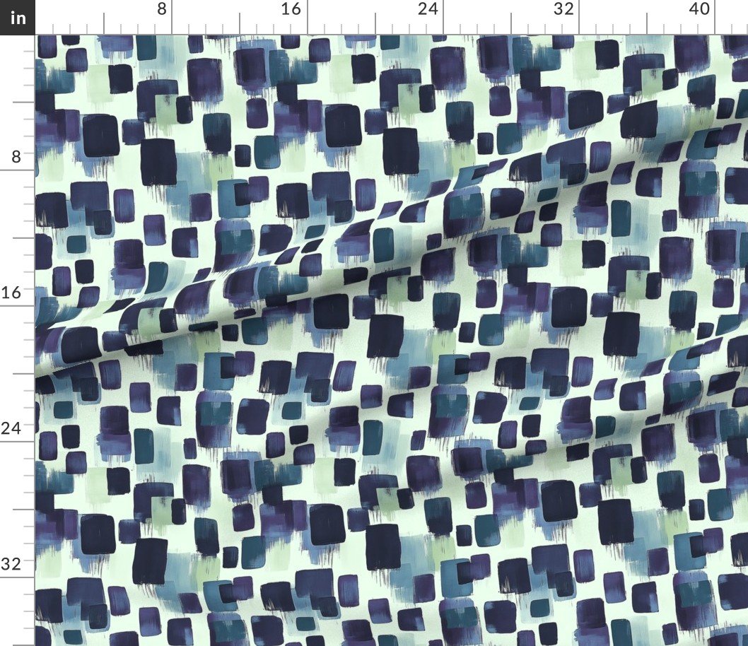 Fabric in Abstract Brushstroke Blocks in Navy Purple and Soft Cream Fabric