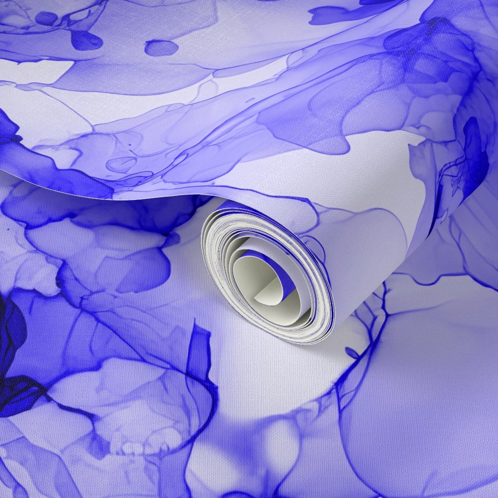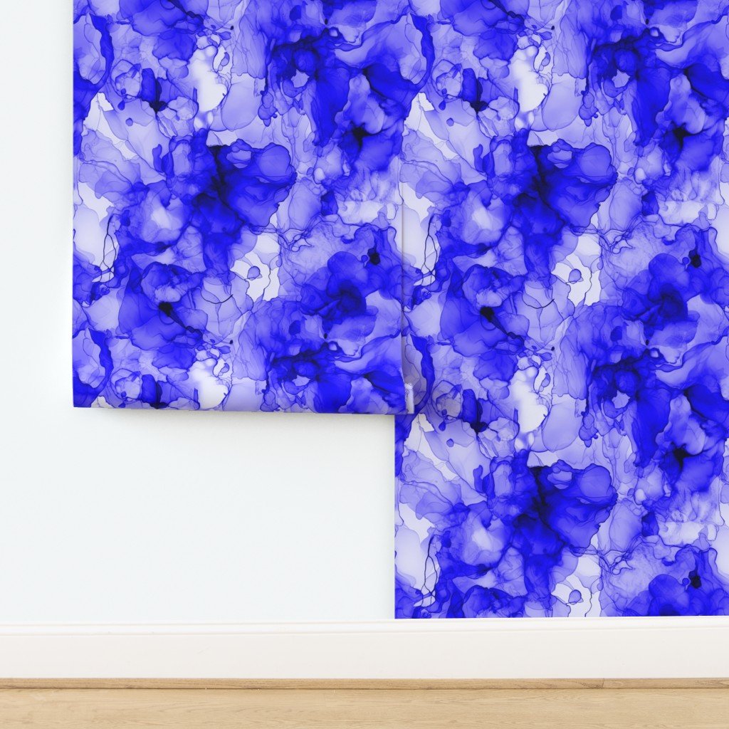 Alcohol Liquid Ink Swirls in Royal Blue Porcelain Glaze Wallpaper