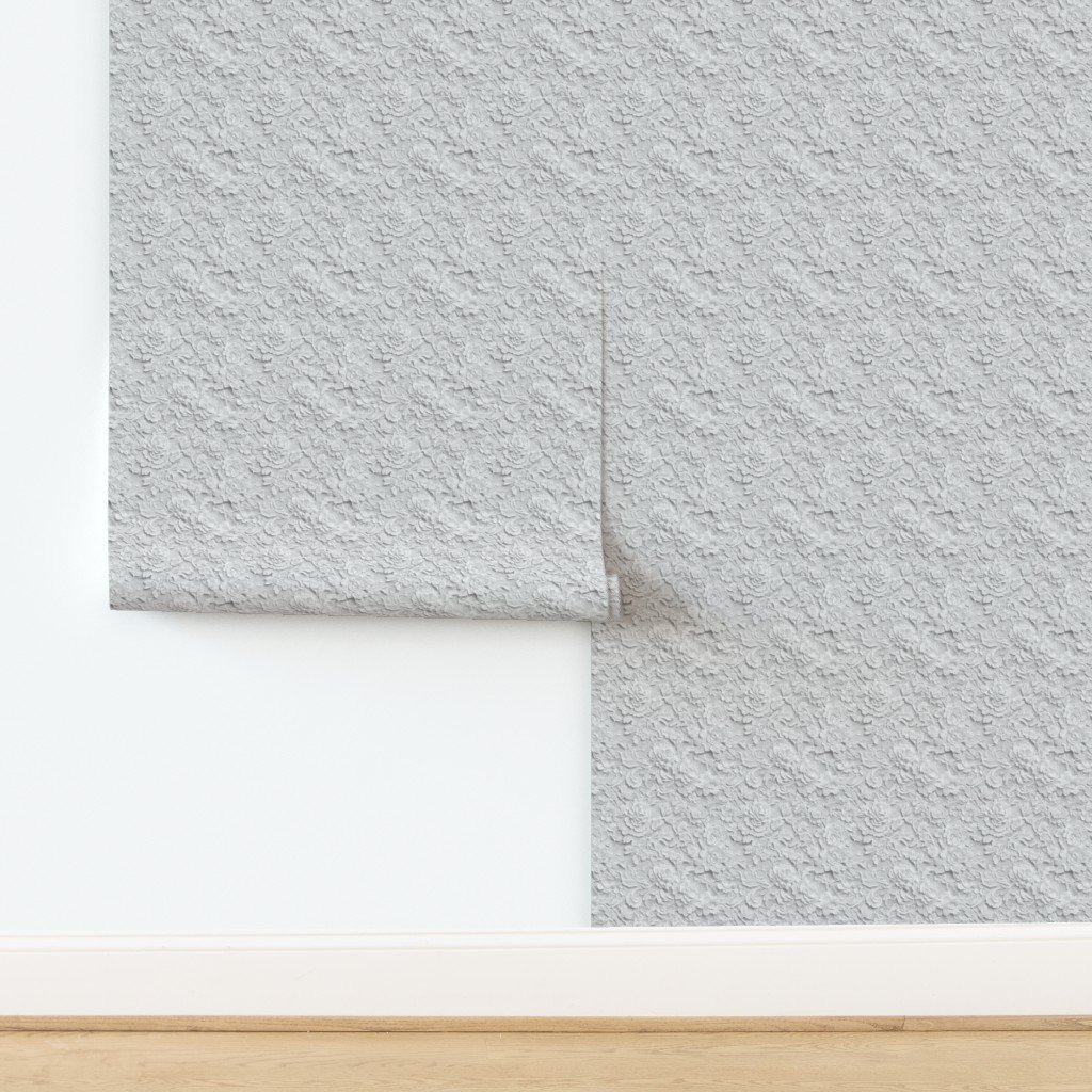 This Alencon lace floral pattern features delicate embroidered florals set on a fine lace ground inspired by traditional French couture lace. Rendered in soft white with subtle watercolor depth, this elegant design is ideal for wedding fabric, bridal gown