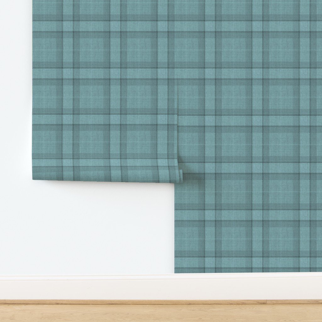 A crisp arctic blue and cool slate plaid with a soft wool texture, ideal for traditional, rustic, or vintage-inspired projects.