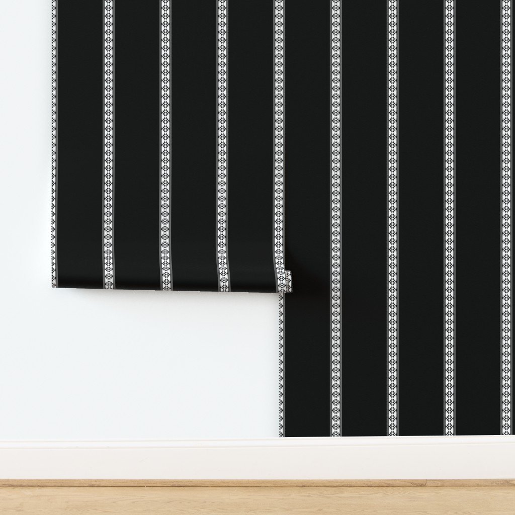 Licorice Black and White 2″ Stripes REVERSED Wallpaper