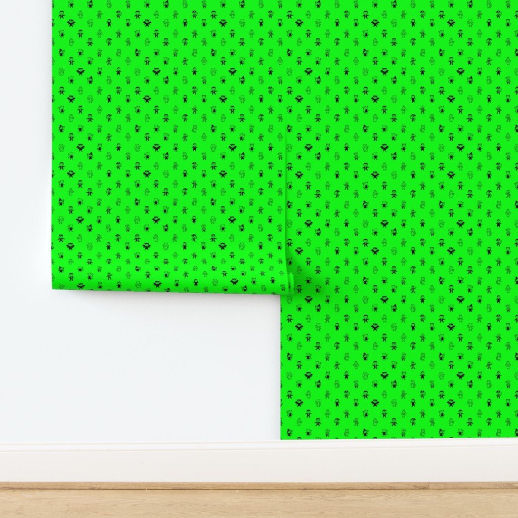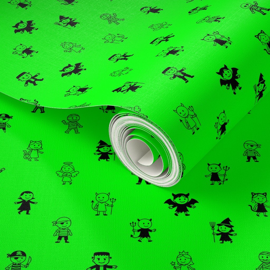 Black Halloween stick figures dance across a toxic slime green background—perfect for spooky crafts, kidswear, or eerie party fun.