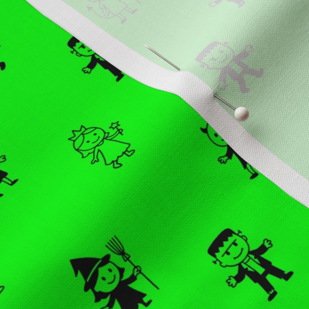 Black Halloween stick figures dance across a toxic slime green background—perfect for spooky crafts, kidswear, or eerie party fun.