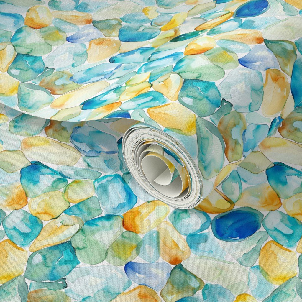 Be the first to review “Blue and Amber Shards of Tumbled and Scattered Watercolor Seaglass Wallpaper”