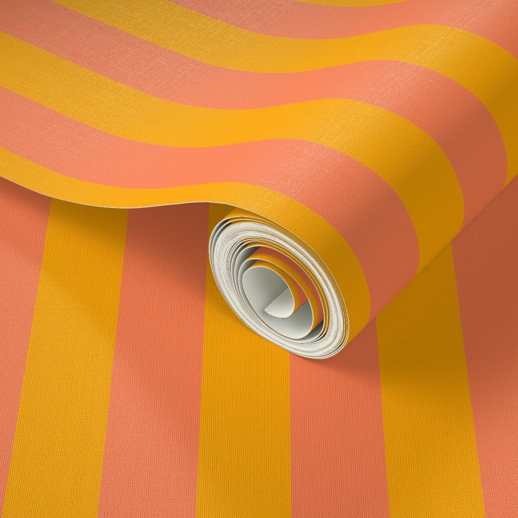 Bold Coastal Classic Coral and Bright Orange Cabana Tent Stripe Wallpaper