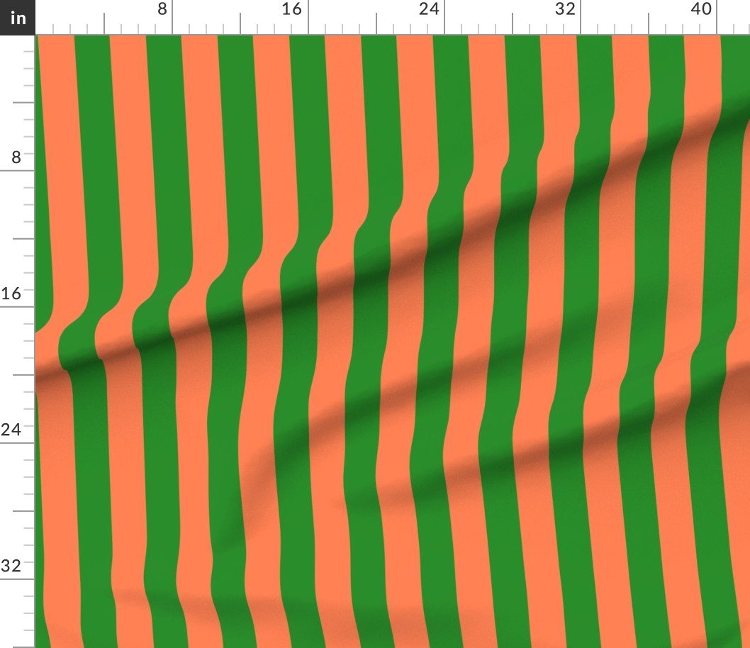 Fabric in Bold Coastal Classic Coral and Forest Green Cabana Tent Stripe