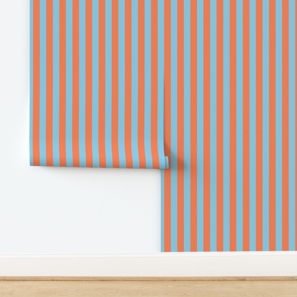 Bold Coastal Classic Coral and Sky Blue Cabana Tent Stripe Wallpaper