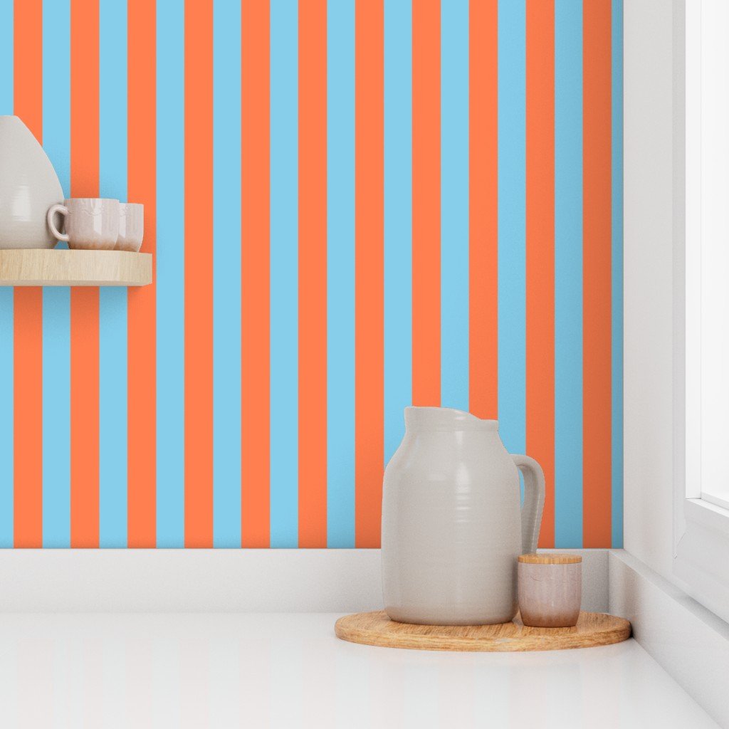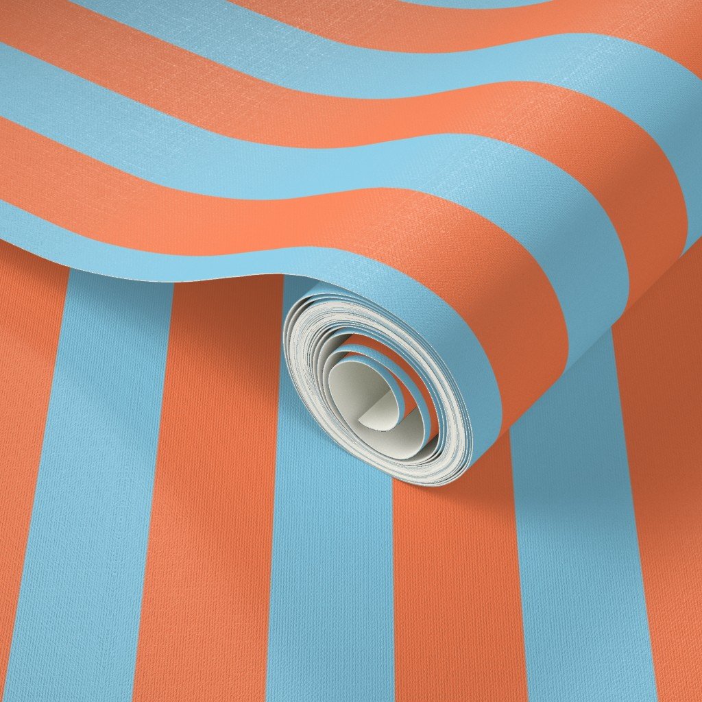 Be the first to review “Bold Coastal Classic Coral and Sky Blue Cabana Tent Stripe Wallpaper”