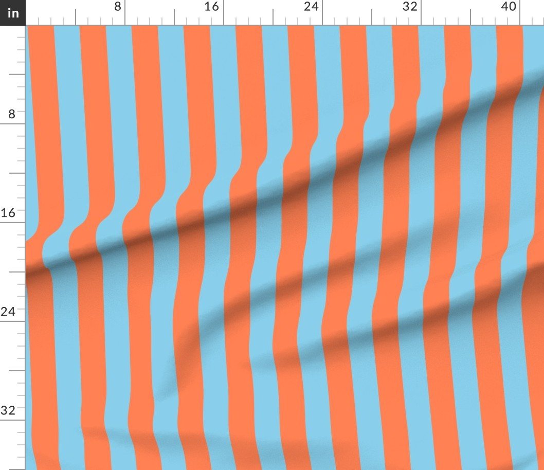 Coral and sky blue cabana tent stripes capture the brightness of summer skies and tropical warmth, perfect for vibrant coastal décor.