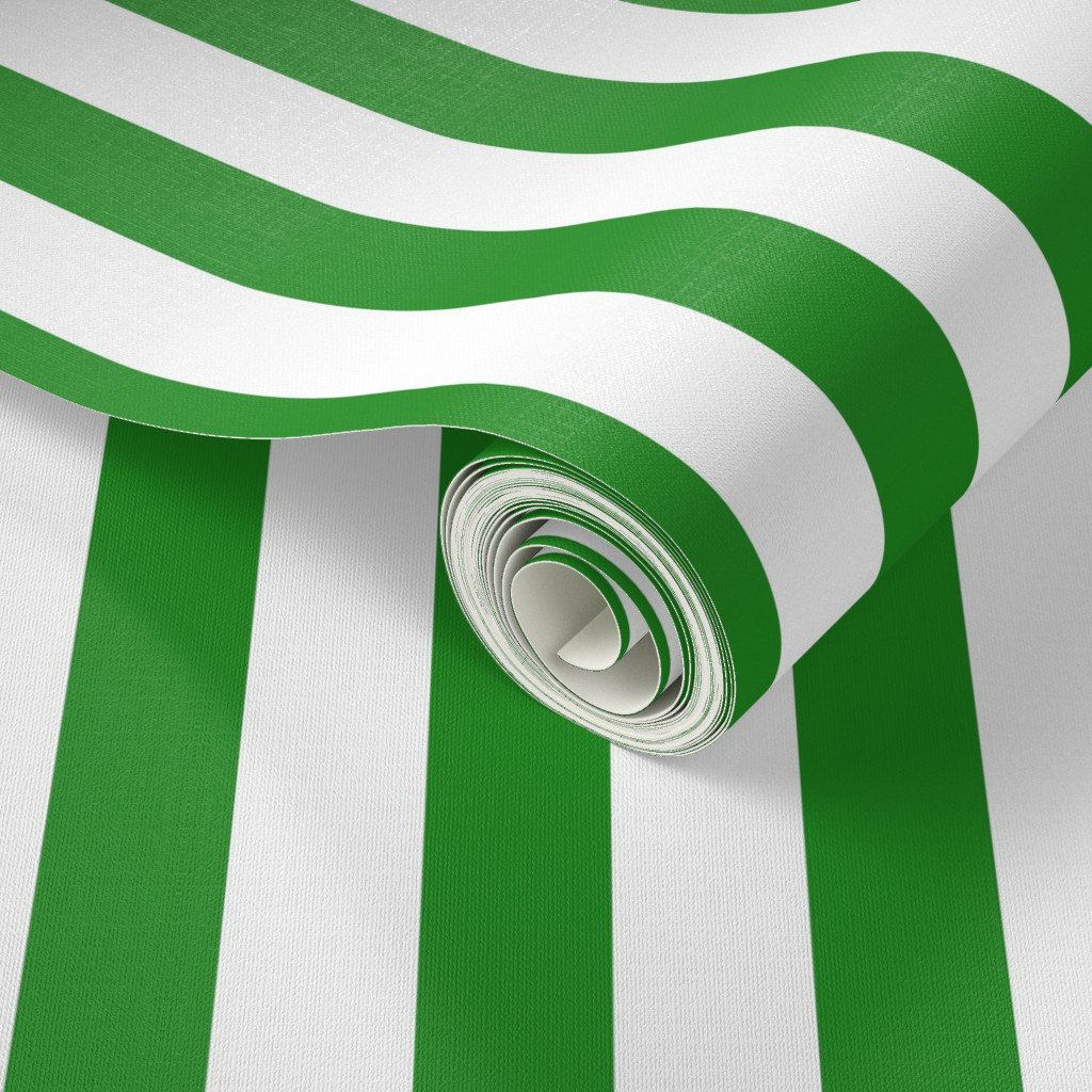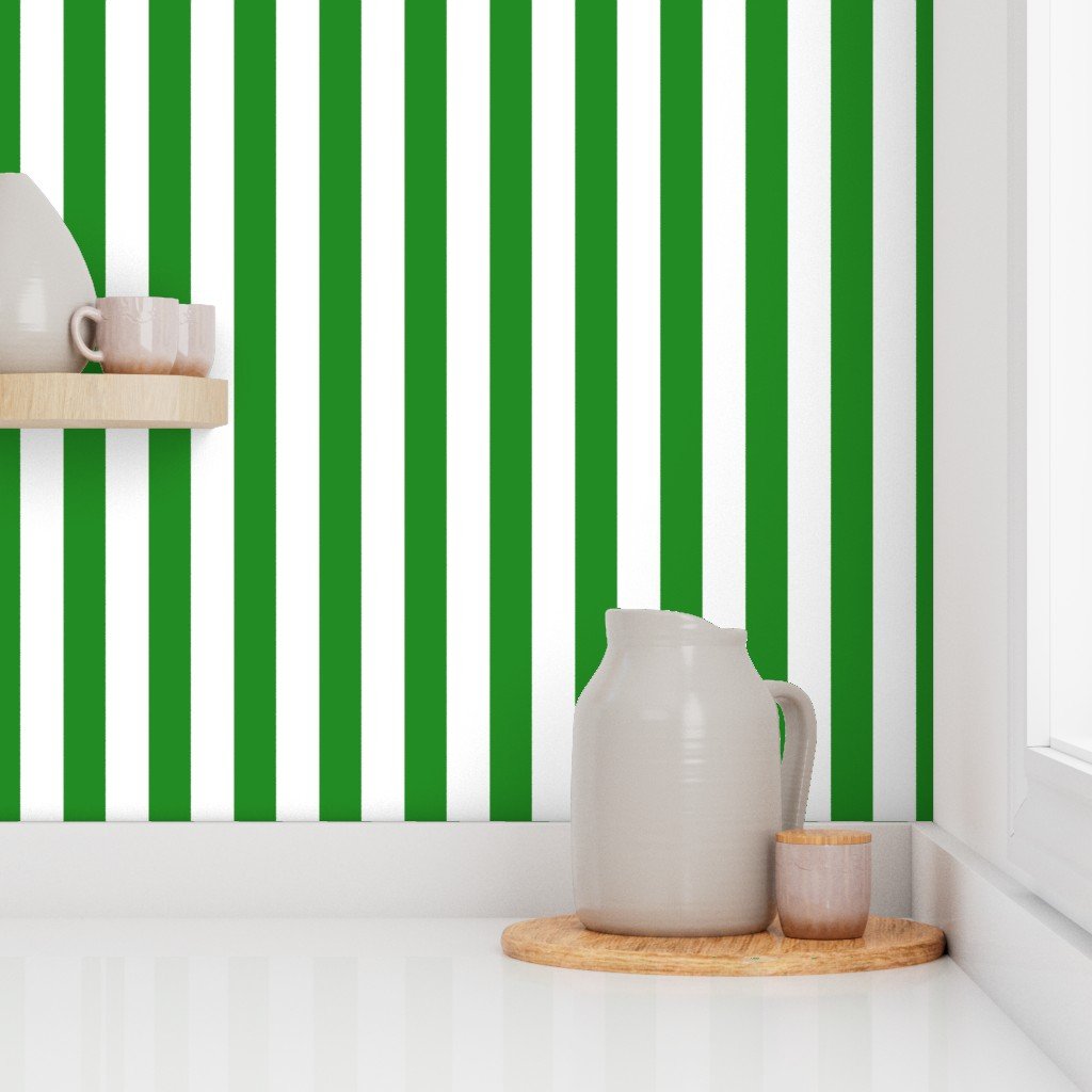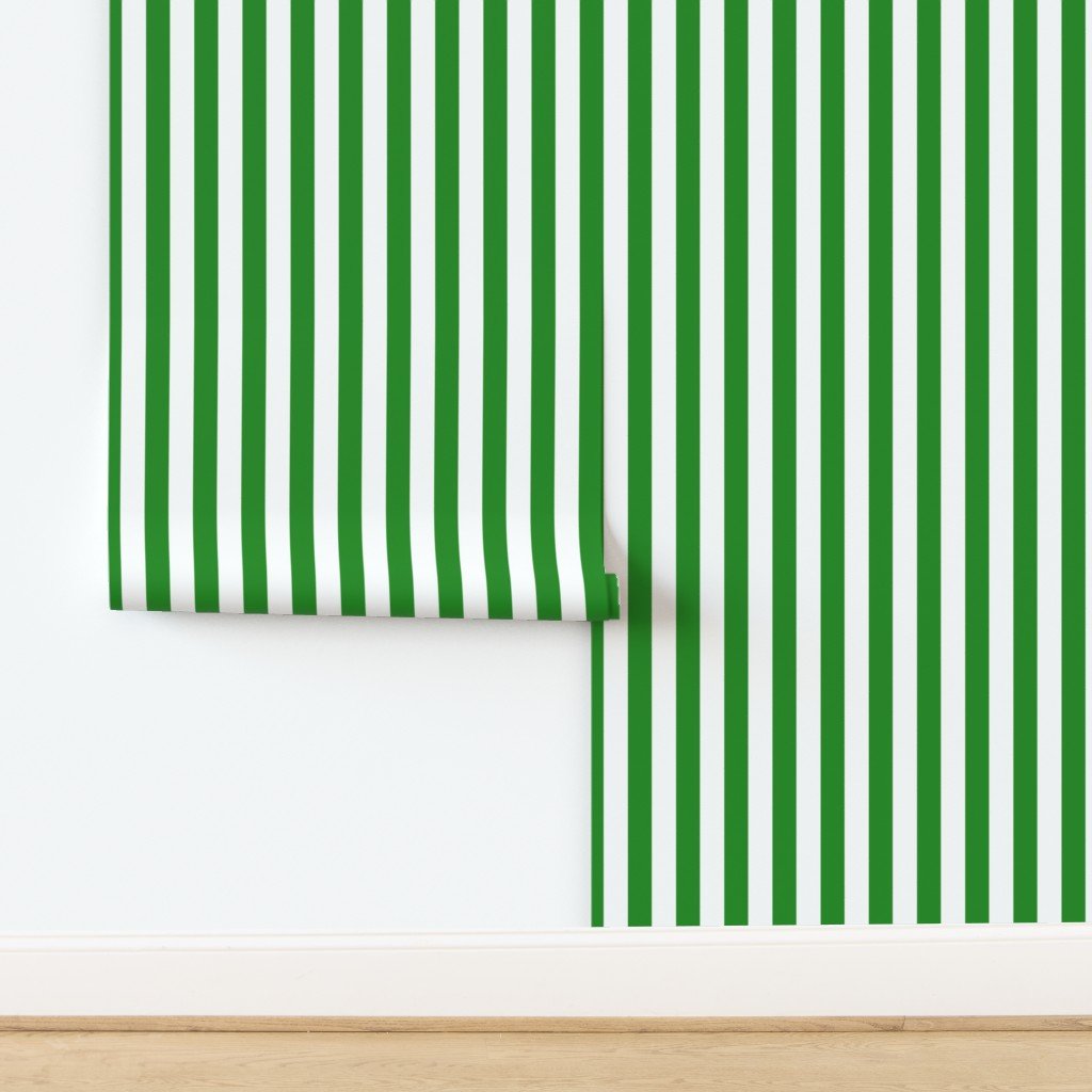 Forest green and white cabana tent stripes combine fresh brightness with earthy depth, perfect for sophisticated summer coastal décor.
