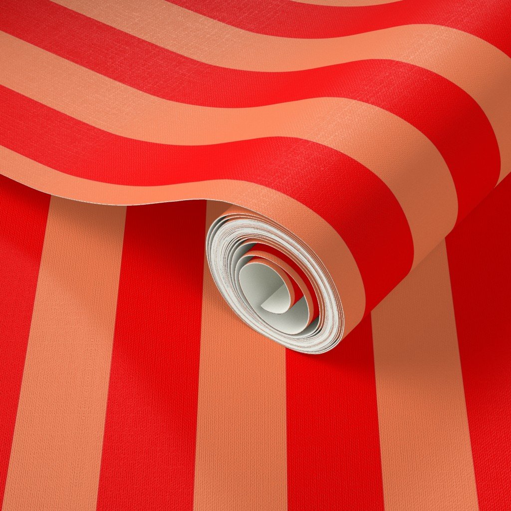 Bold Coastal Classic Red and Coral Cabana Tent Stripe Wallpaper