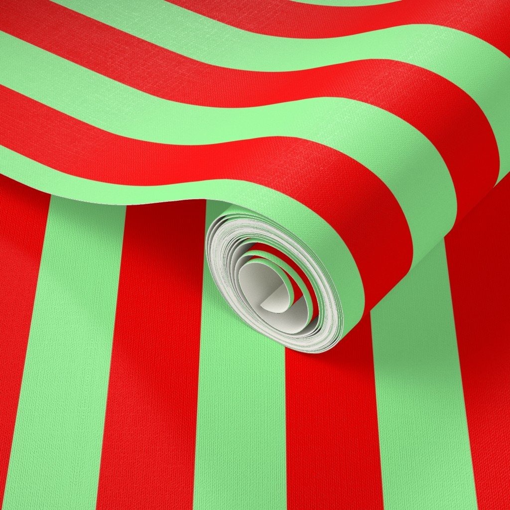 Red and mint green cabana tent stripes bring fresh retro charm, perfect for summer picnics, coastal holiday décor, and playful interiors.