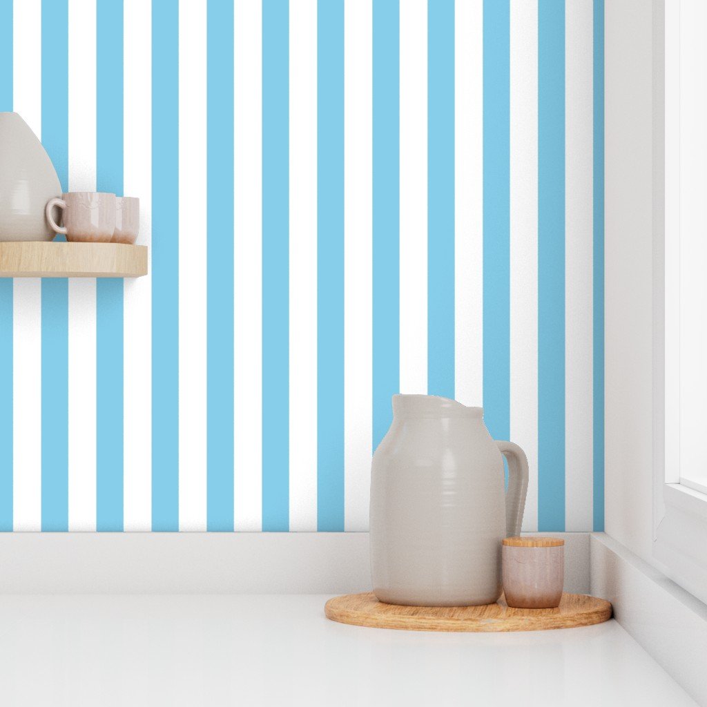 Sky blue and white cabana tent stripes evoke clear summer skies and fresh sea breezes, perfect for coastal homes and sunny holiday décor.