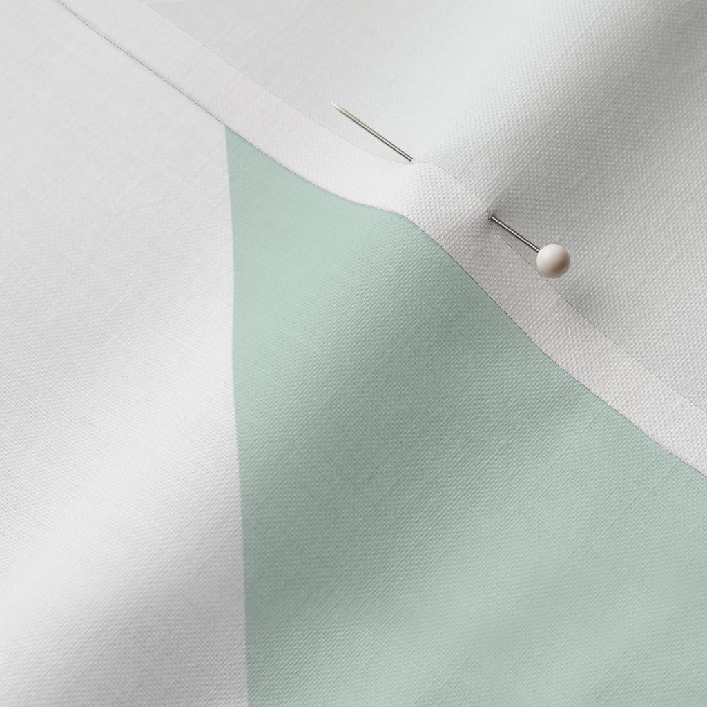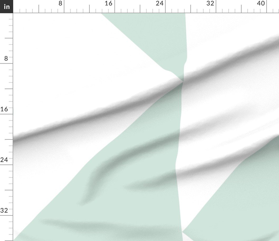 A bold large-scale geometric wallpaper featuring oversized pale mint triangles on white, arranged in a clean architectural pattern. Designed for open interiors, staircases, dining rooms, and statement feature walls, this design adds a fresh, airy softness