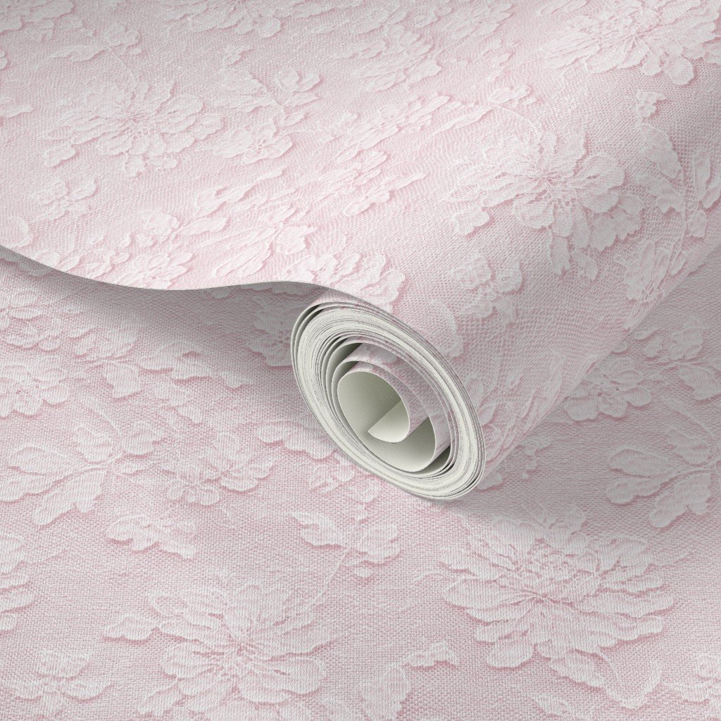 An elegant Chantilly lace floral pattern rendered in pale blush pink, featuring intricate rose details and airy lace mesh texture. This soft watercolor lace design evokes romance and nostalgia, making it ideal for weddings, bridal accessories, baby décor,