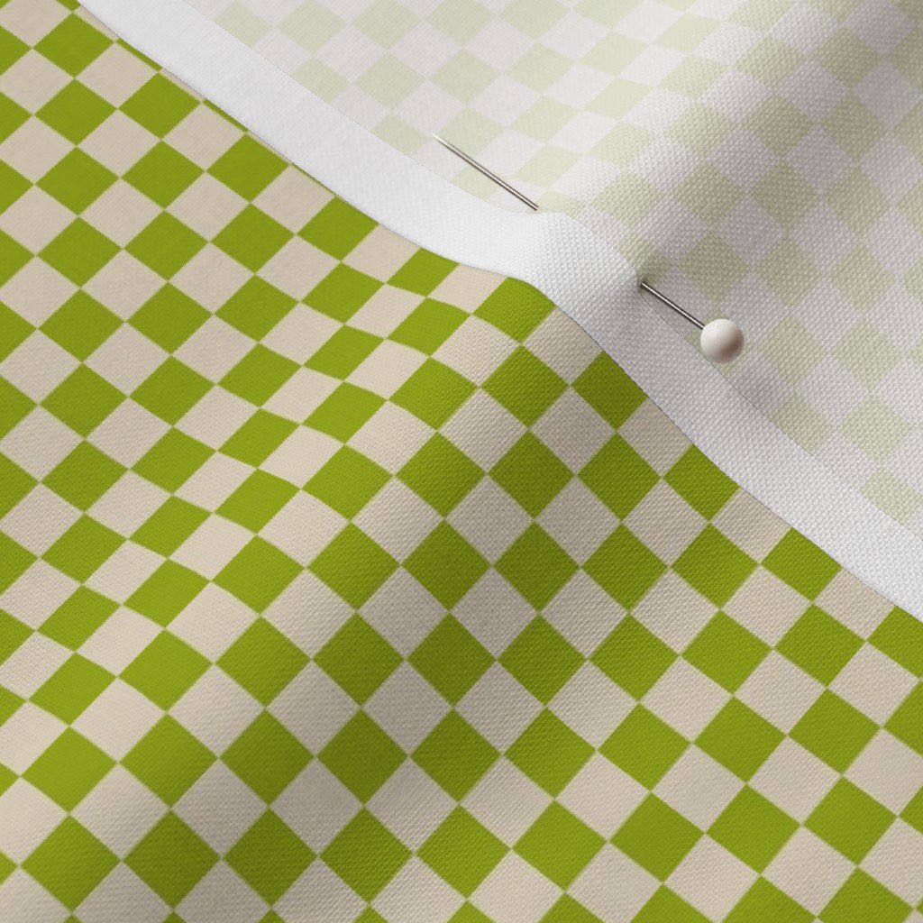 A 1/4 inch Classic check in Sickly Chartreuse on Soft Linen Cream. This fine check offers gentle structure while pairing a vivid green with a calm neutral base.