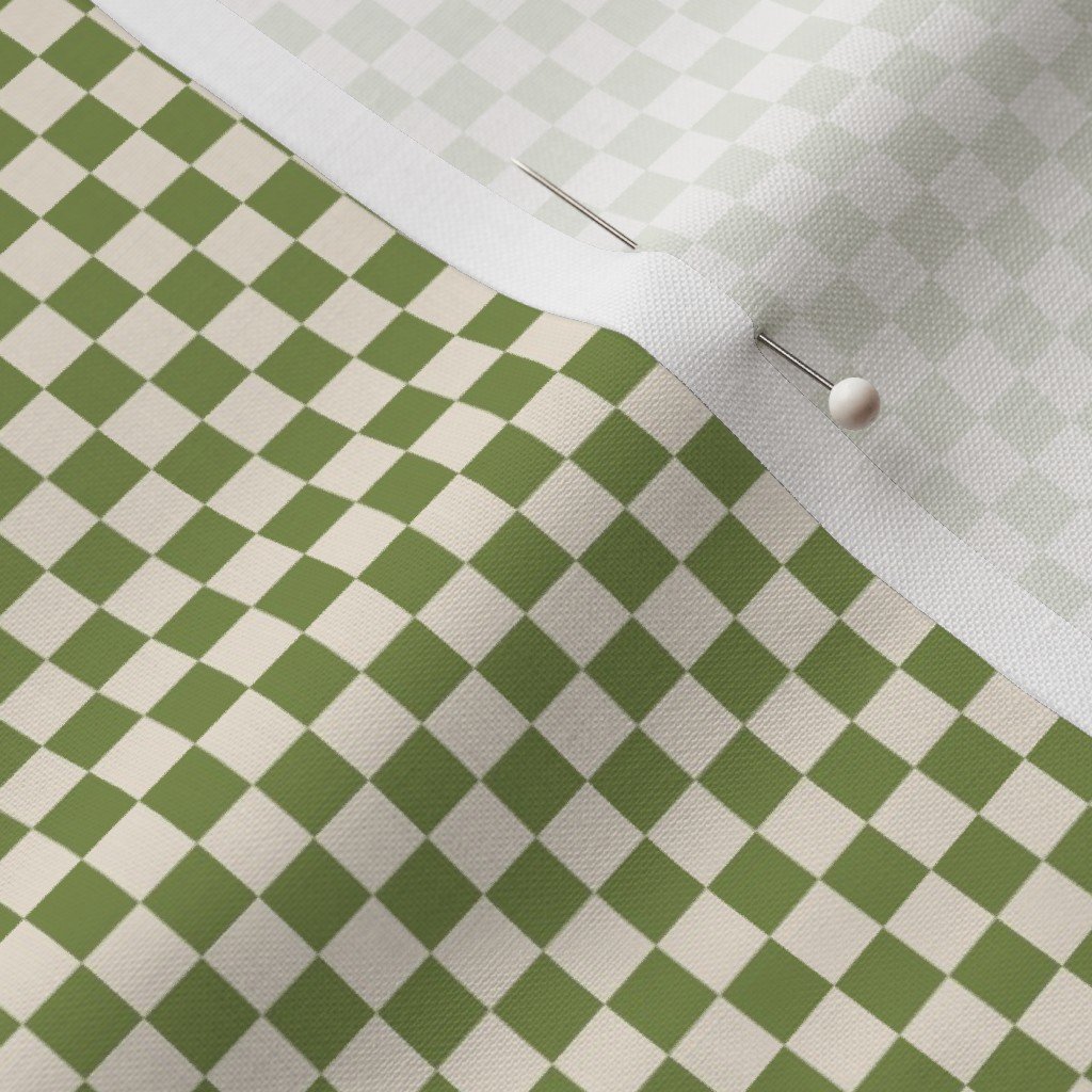 A refined 1/4 inch Classic check in Zombie Olive on Warm Oat Cream. The smaller scale introduces subtle structure while keeping this olive tone cohesive and controlled.