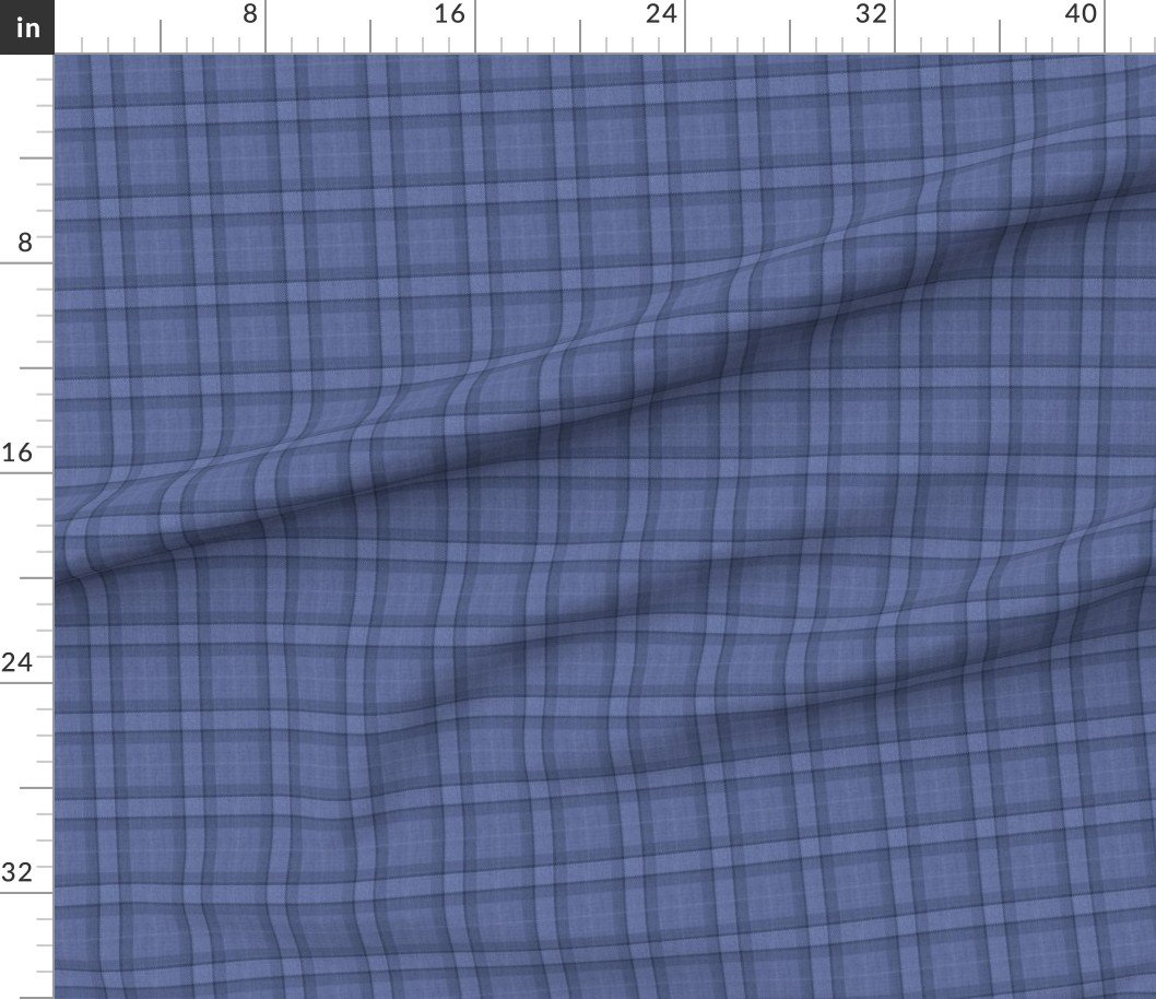 A small-scale denim blue check pattern inspired by rustic farm life and cowboy charm, perfect for timeless country style projects.