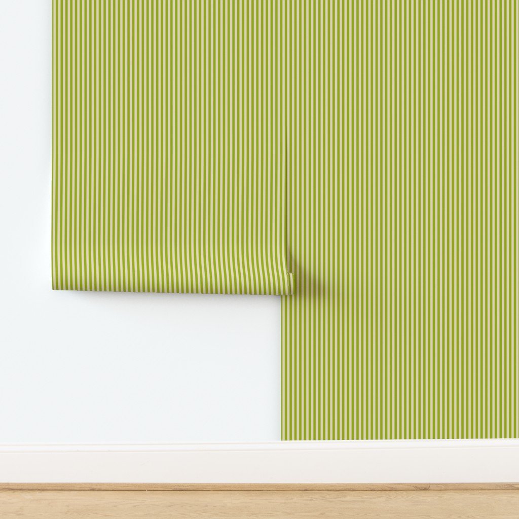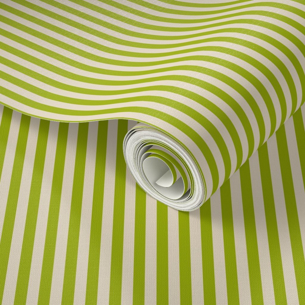 Classic Stripe in Sickly Chartreuse on Soft Linen Cream 1/4 Inch Wallpaper