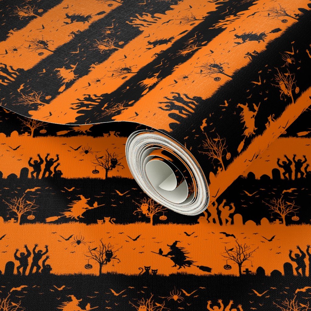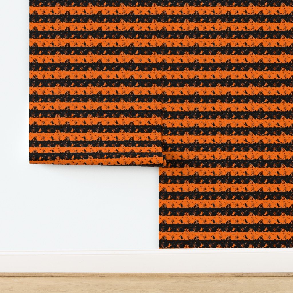 Dark Pumpkin Orange and Black Halloween Cabana Stripes