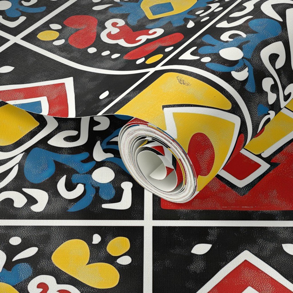 Be the first to review “Dashiki Fusion Bold Geometric Yellow Red and Blue on Black Wallpaper”
