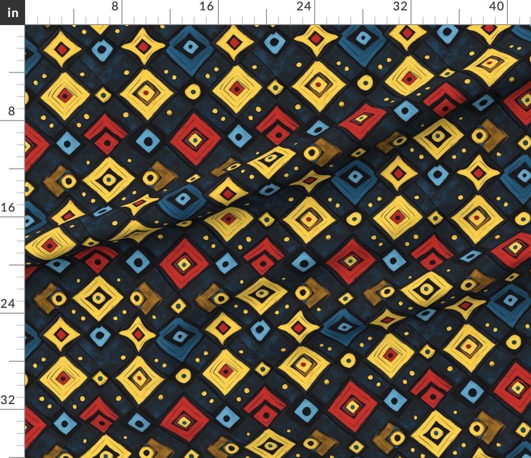 Fabric in Dashiki Fusion Geometric Diamonds Yellow Red and Blue Fabric