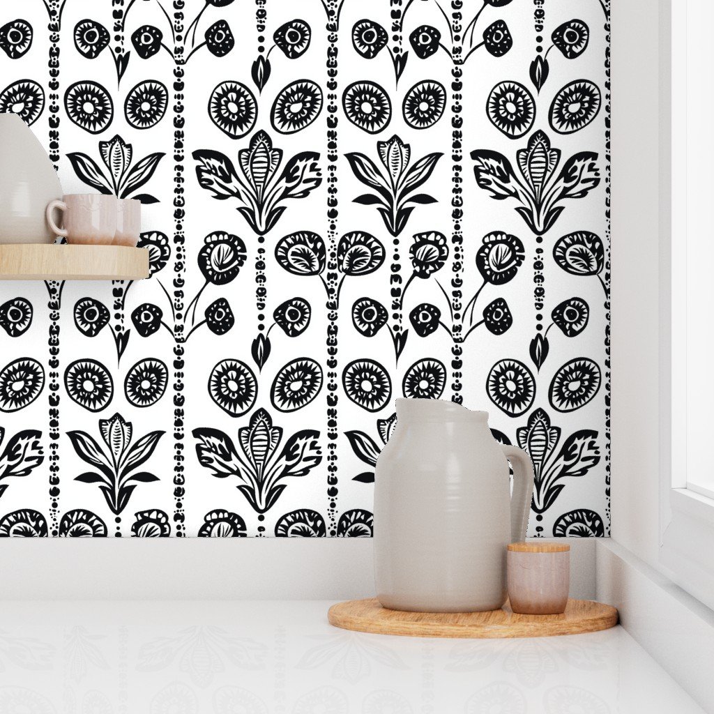 Be the first to review “Dashiki Fusion Monochrome Floral and Circular Motifs Wallpaper”