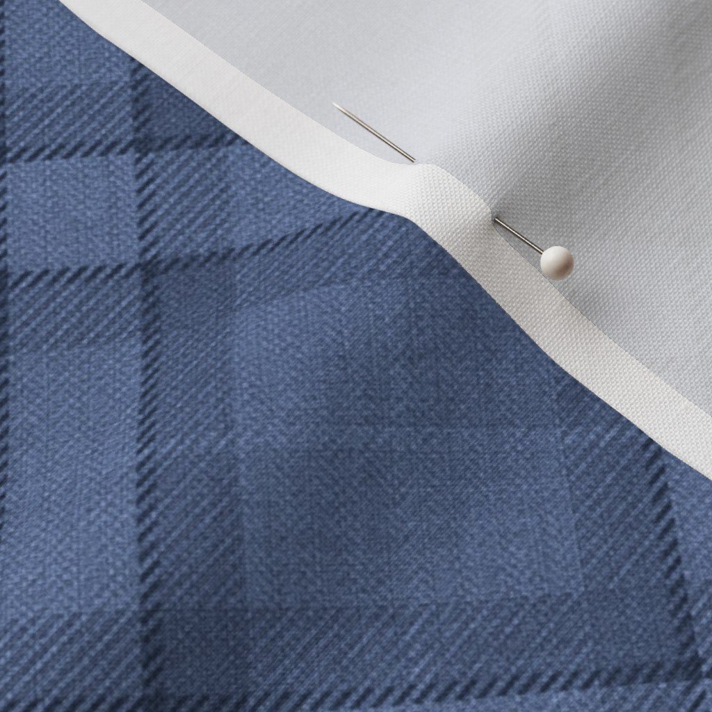 A compact diagonal tartan plaid in denim blue and steel gray with a soft wool-style texture. The smaller repeat and angled layout create visual movement while remaining refined, making it well suited for apparel, accessories, and modern décor.