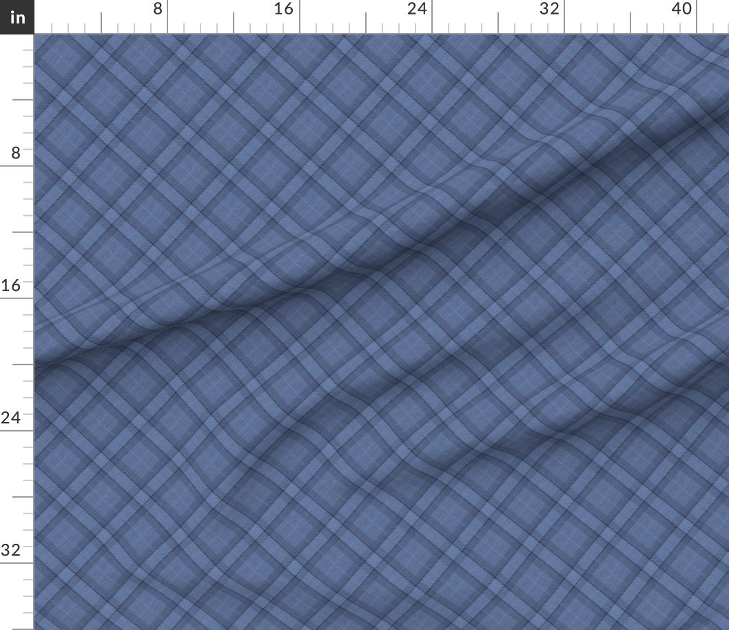 Denim Blue and Steel Gray Wool Texture Small Diagonal Tartan Plaid