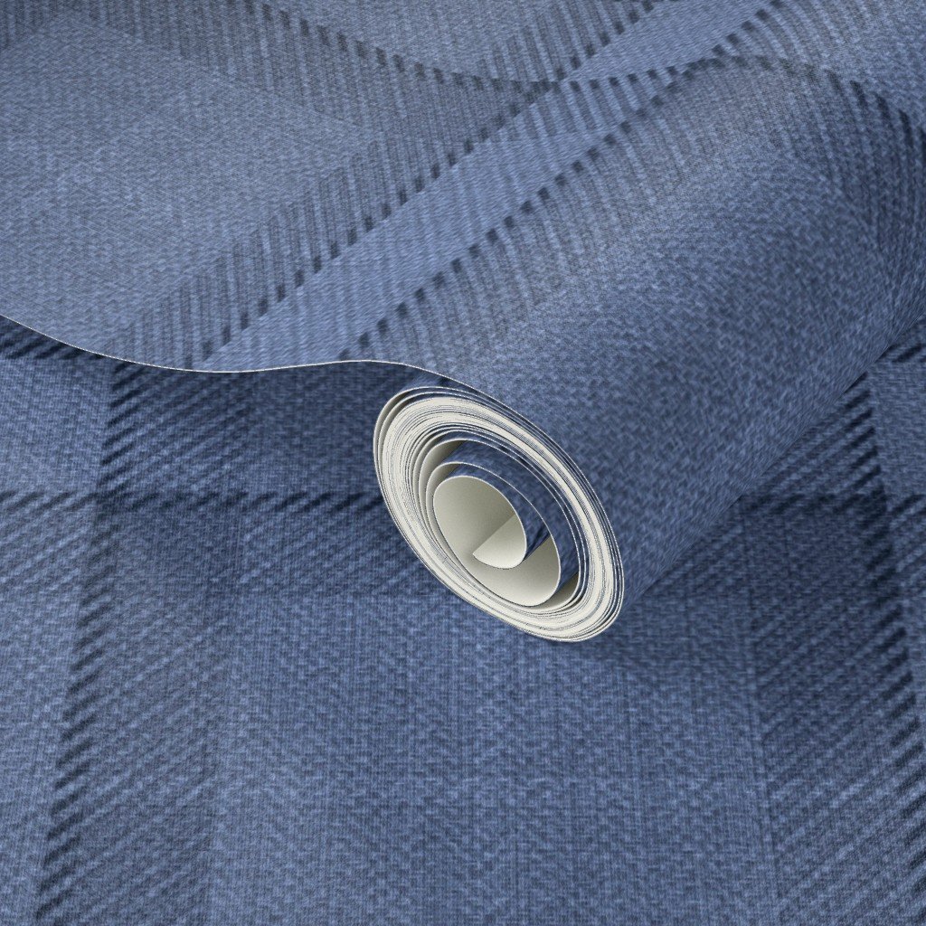 A rich denim blue and steel gray plaid with cozy wool texture, perfect for rustic decor, traditional crafts, or vintage fashion.