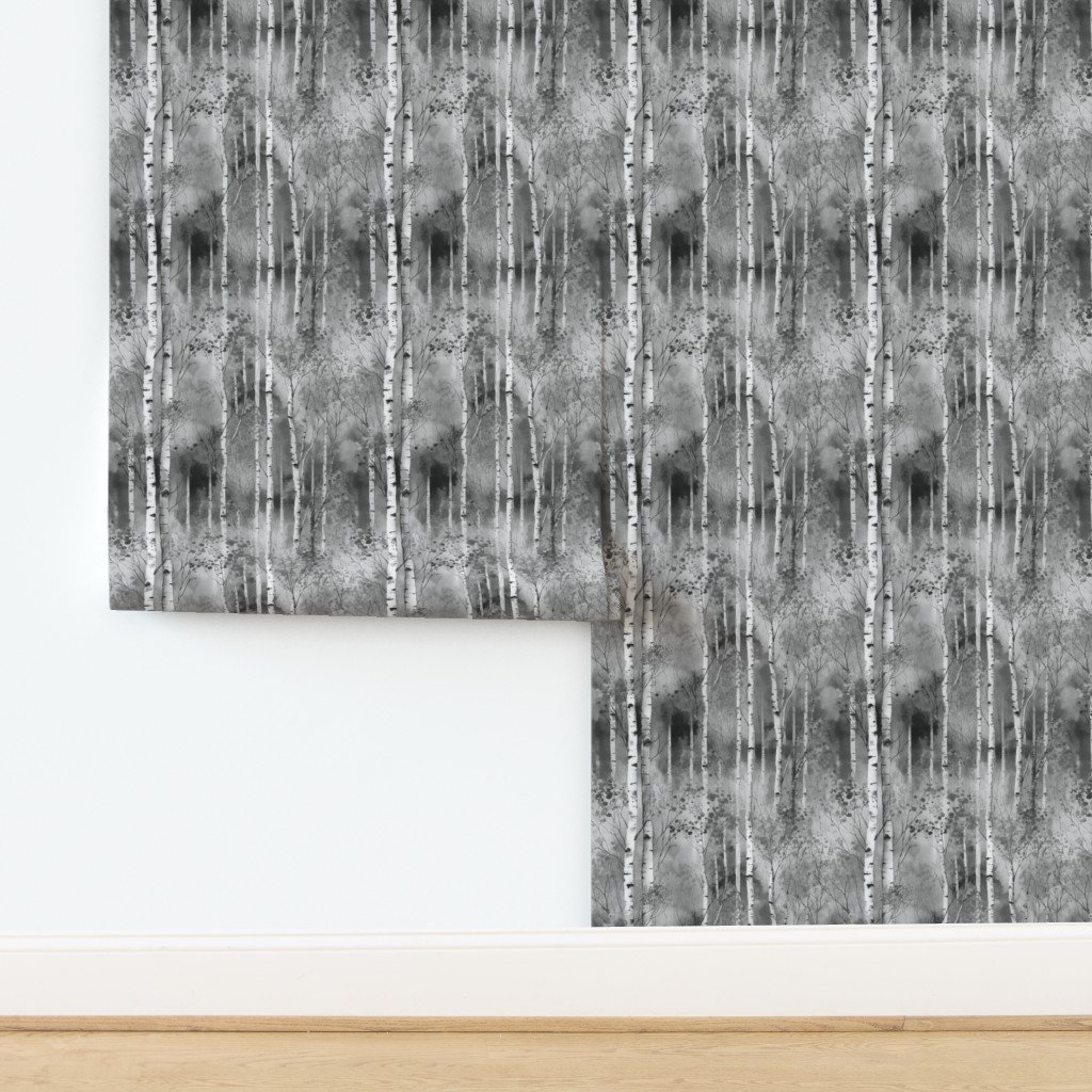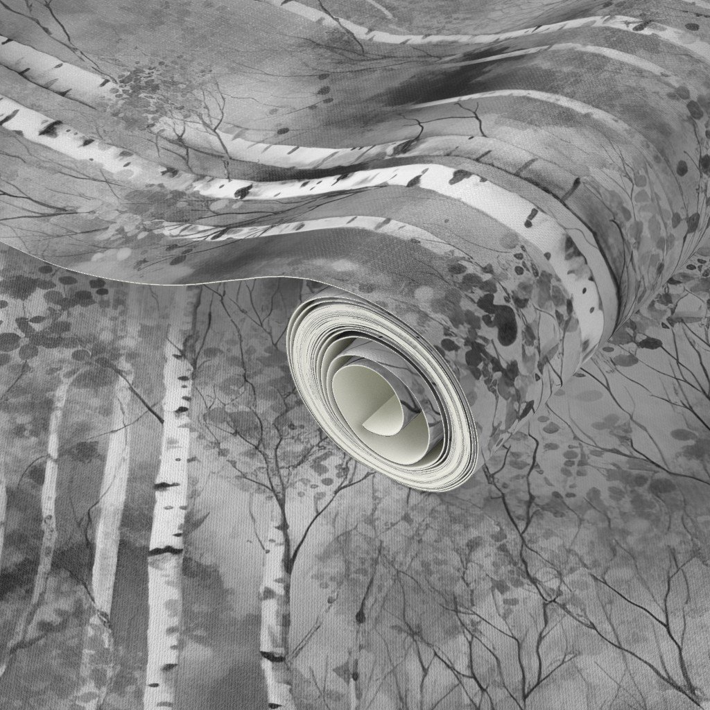 Endless Birch Tree Dreamscape Trees in Grey Porcelain Glaze Wallpaper