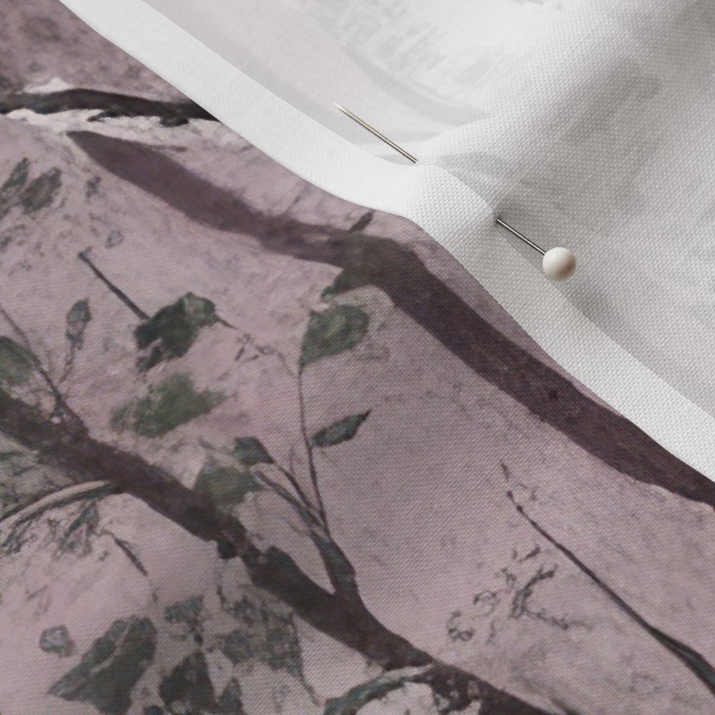 Misty birch tree dreamscape in soft rose and moss green tones, offering a serene and peaceful ambiance, perfect for artistic decor projects