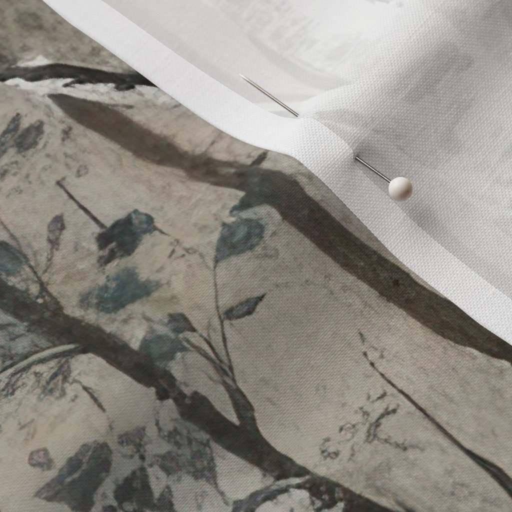 A serene watercolor pattern of silver birch trees in soft taupe and gray tones. This dreamscape evokes a calm, misty forest atmosphere, perfect for na