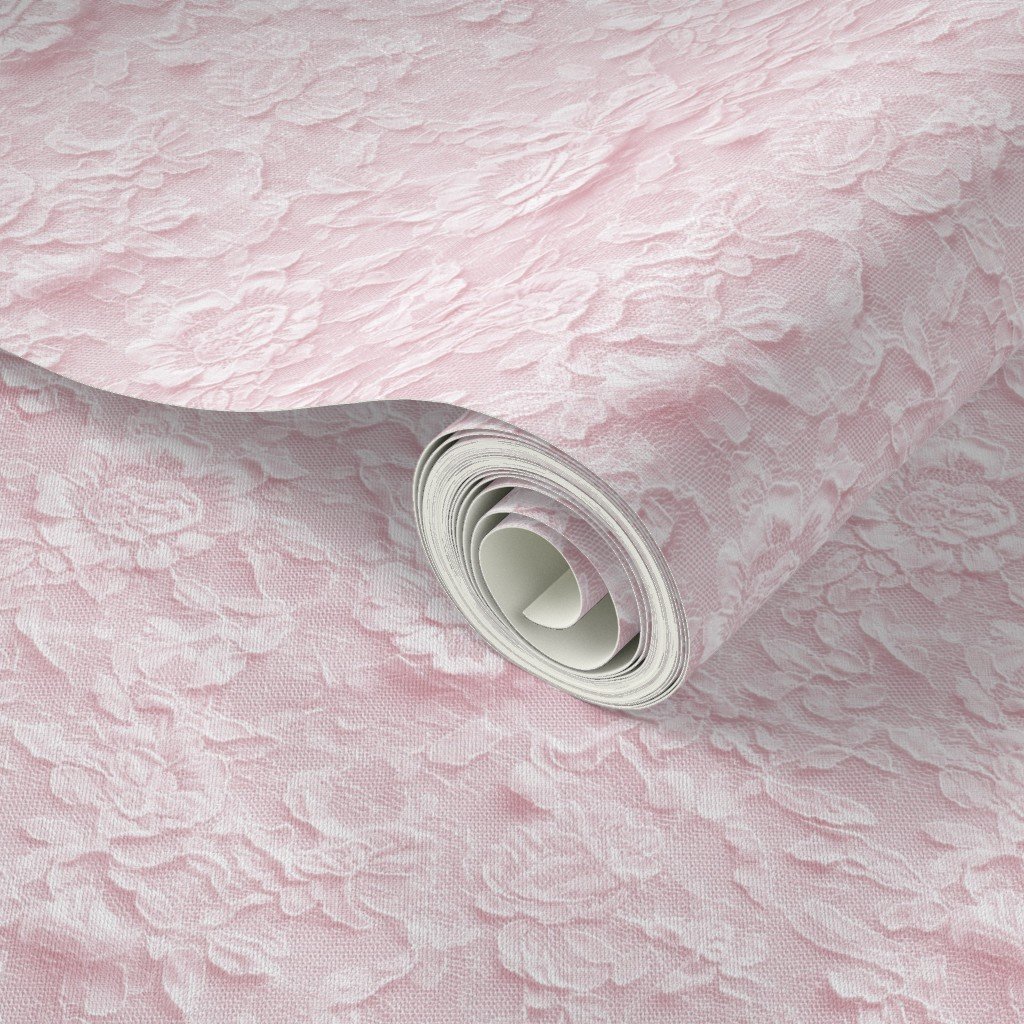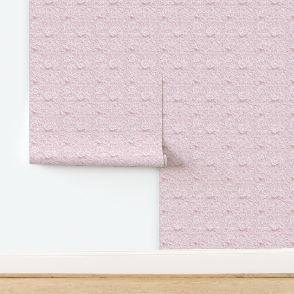 Eyelet Lace Floral Pattern in Blush Pink Wallpaper