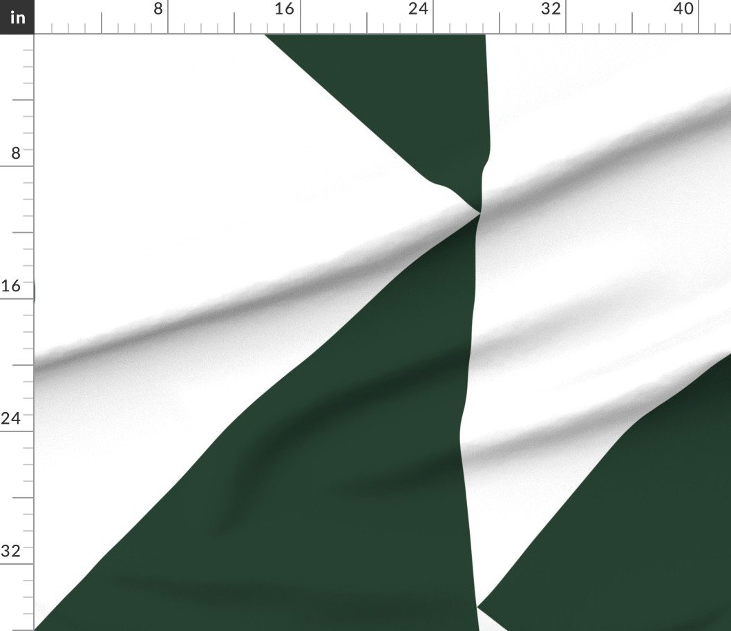 A bold large-scale geometric wallpaper featuring oversized forest green triangles on white, arranged in a strong architectural pattern. Designed for open interiors, staircases, dining rooms, and statement feature walls, this design adds depth and richness