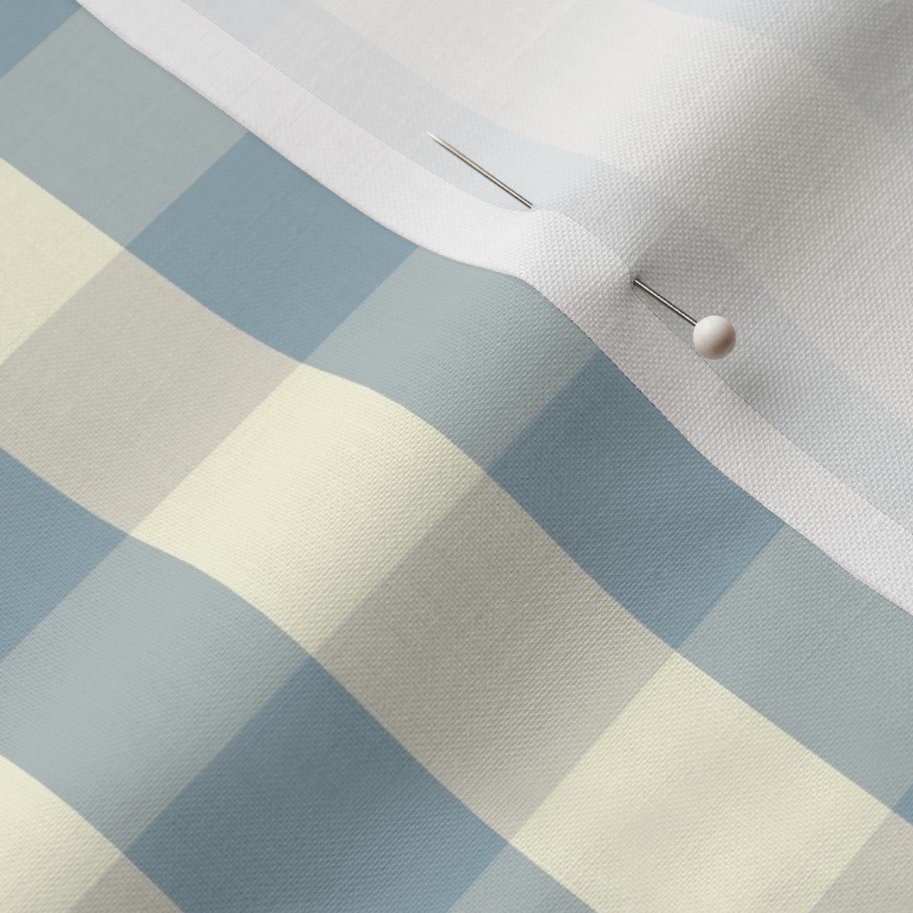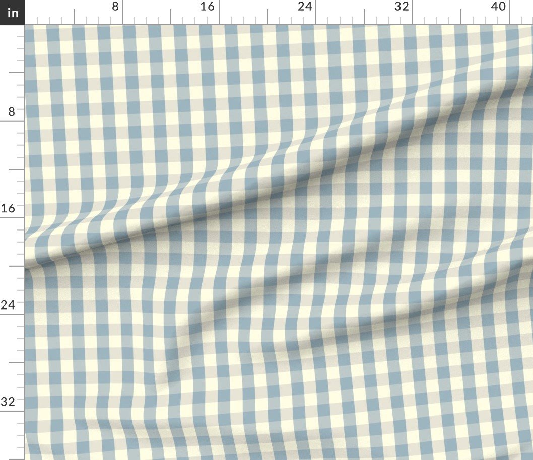 This gentle 1 inch gingham pattern in airy blue and ivory cream brings a breezy, vintage feel to your fabric projects. The softened tones make it perfect for nurseries, spring decor, and minimalist country style.