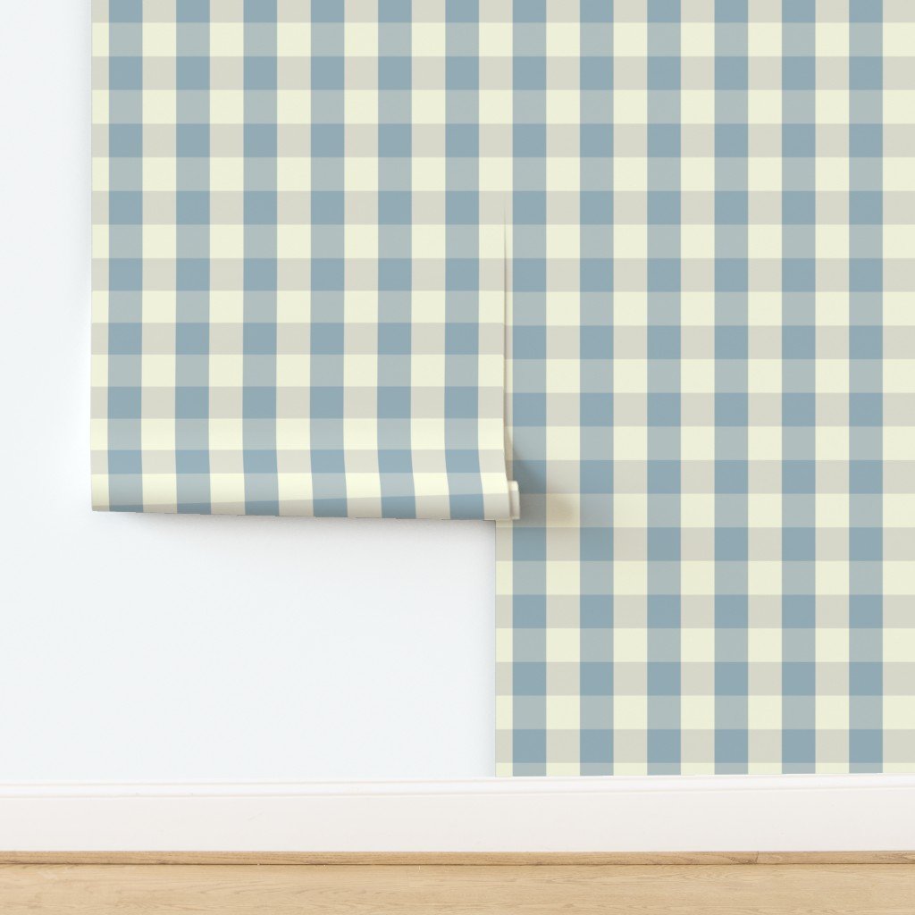 Faded 2 inch Airy Blue Gingham Check Wallpaper