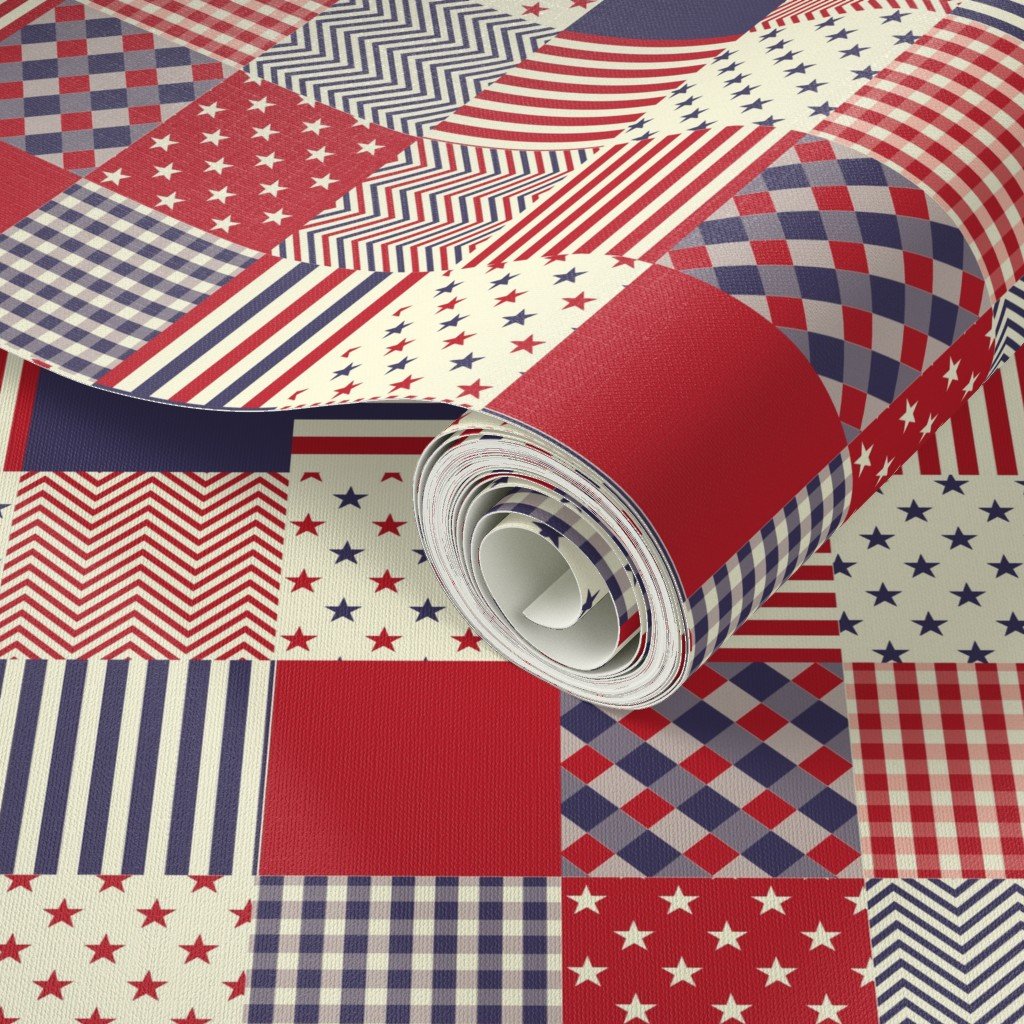 Be the first to review “Faded Antique USA Mini Flag Patchwork Quilt Squares Wallpaper”