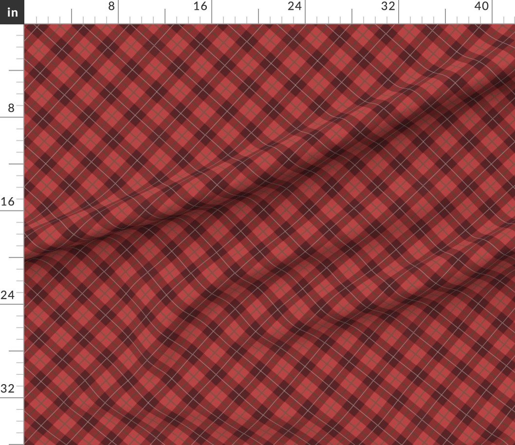 Fabric in Faded Vintage Cranberry Red Green and White Seasonal Christmas Tartan Check Fabric